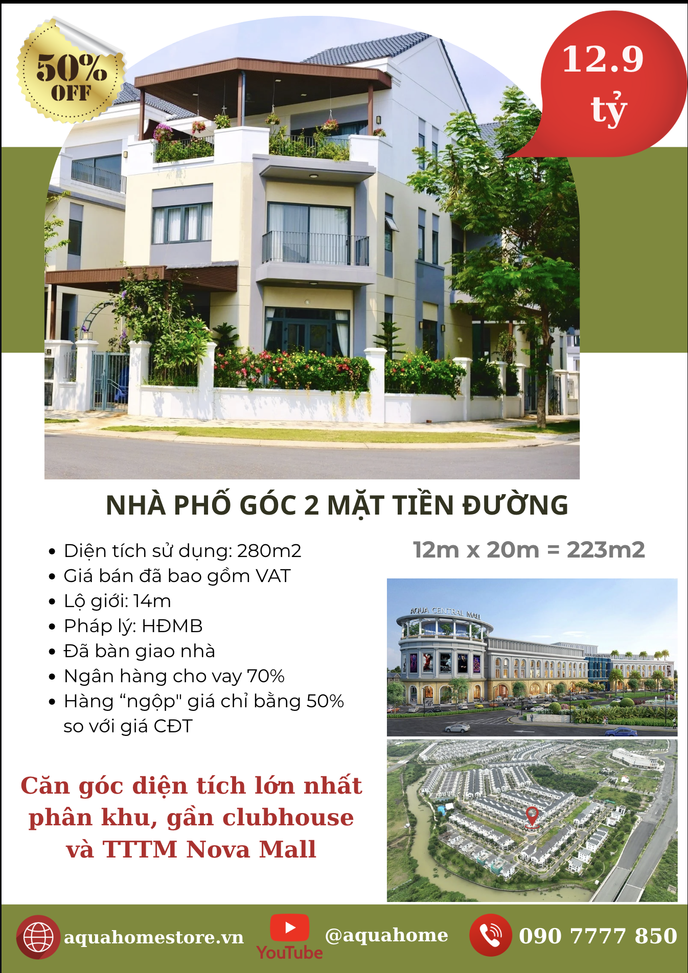 BIỆT THỰ AQUA CITY 8M X 20M ĐƯỜNG THÔNG, GIÁ 8.5TỶ!!! ĐỈNH CAO HÀNG "NGỘP" CHỈ 1 CĂN!